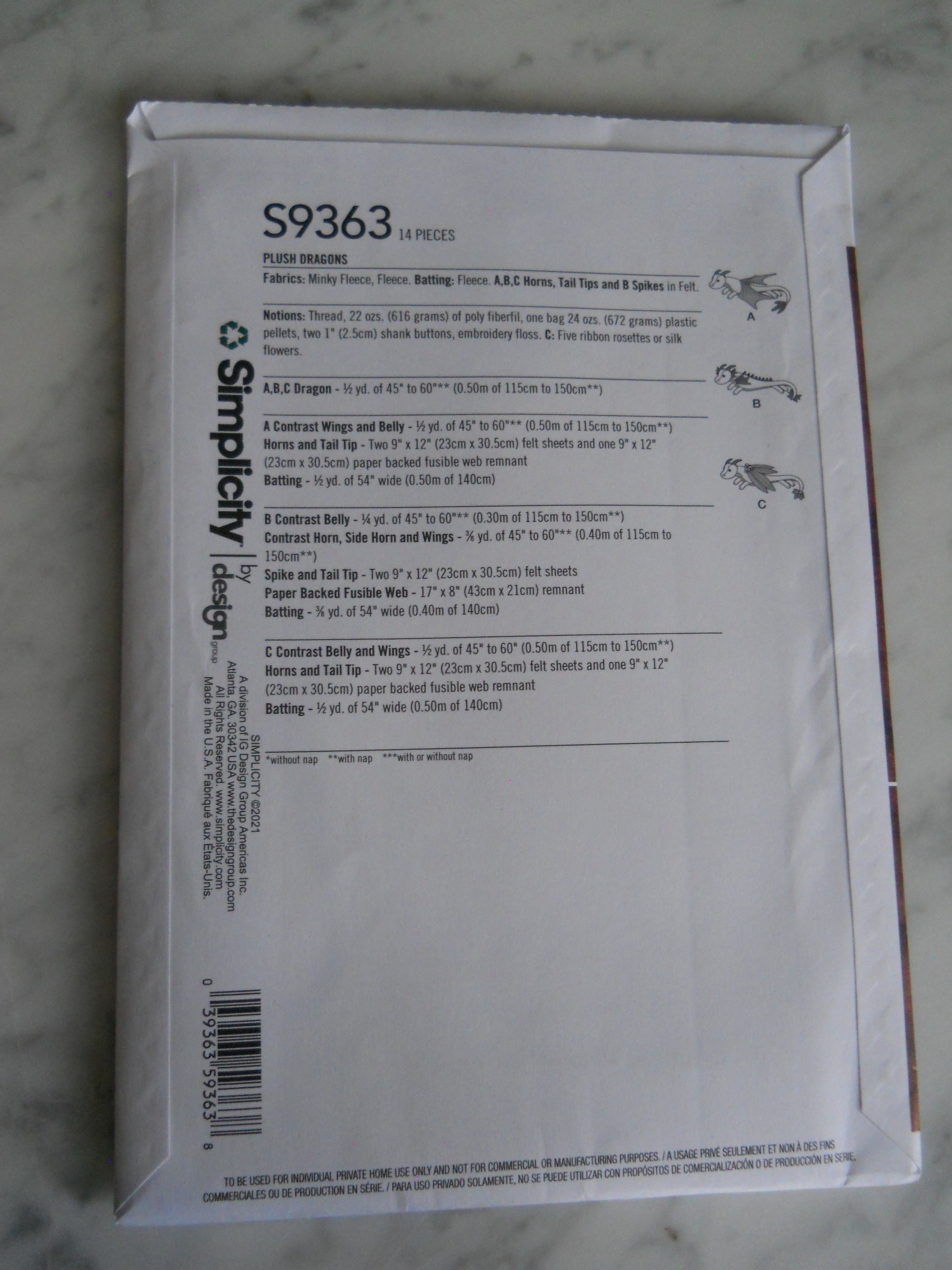 Plush Fleece Dragon Simplicity S9363 Sewing Pattern For Etsy